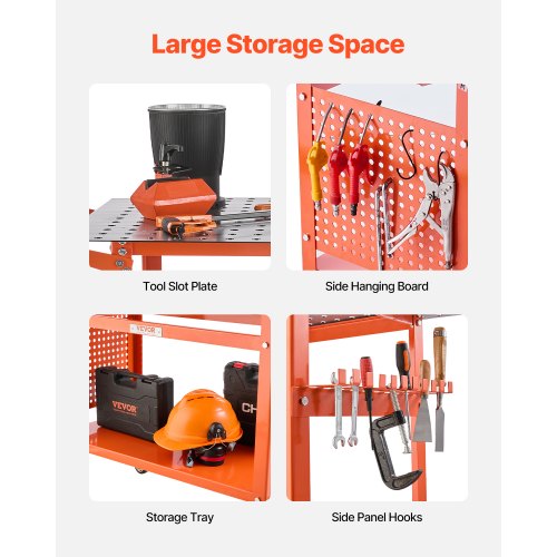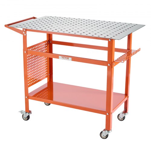 VEVOR Mesa de Soldadura de 91,4 x 61 cm Banco de Trabajo de Soldadura Carga de 272 kg de Acero sobre Ruedas con Tablero de Almacenamiento de Doble Capa, Orificios para Accesorios de 1,6 cm, 11 Ganchos