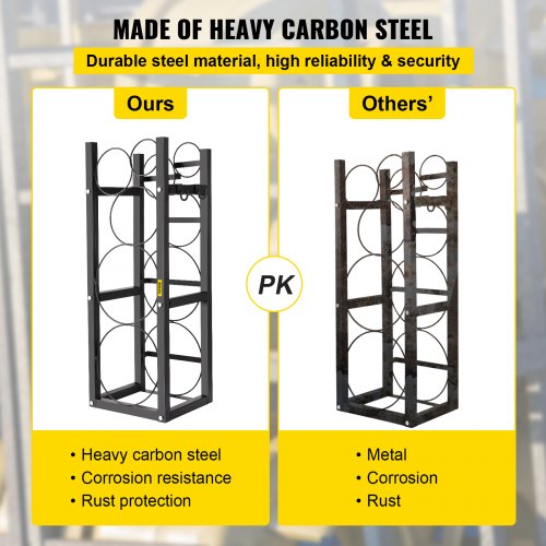 VEVOR Soporte para tanque de refrigerante con 3 x 30 libras y 3 otros que ahorran espacio Estante para tanque de cilindro 46 x 12 x 11 pulgadas para almacenamiento de gas nitrógeno y oxígeno