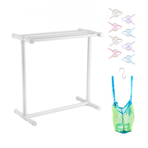 VEVOR Toallero para piscina 5 barras organizador de almacenamiento independiente en forma de T de PVC para exteriores incluye 8 clips para toallas, bolsa de malla, gancho para playa, piscina, hogar