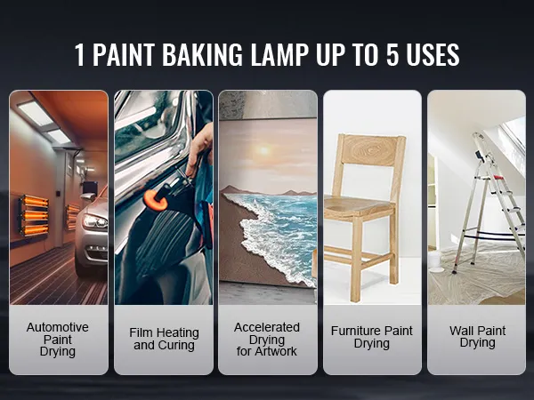 Various applications: Our infrared lamps are used in automotive spray painting booths, local paint drying, putty drying, car spray baking booths, heating, pressure drying machines, drying of various equipment, furniture painting and other areas.