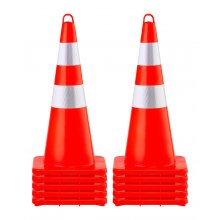 VEVOR Cono de Tráfico 6 Piezas 90 cm Pedestal de Obra de PVC Naranja, Cono de Seguridad con Base Pesada y Collares Reflectantes para Demarcación de Estacionamiento de Emergencia en Estacionamiento