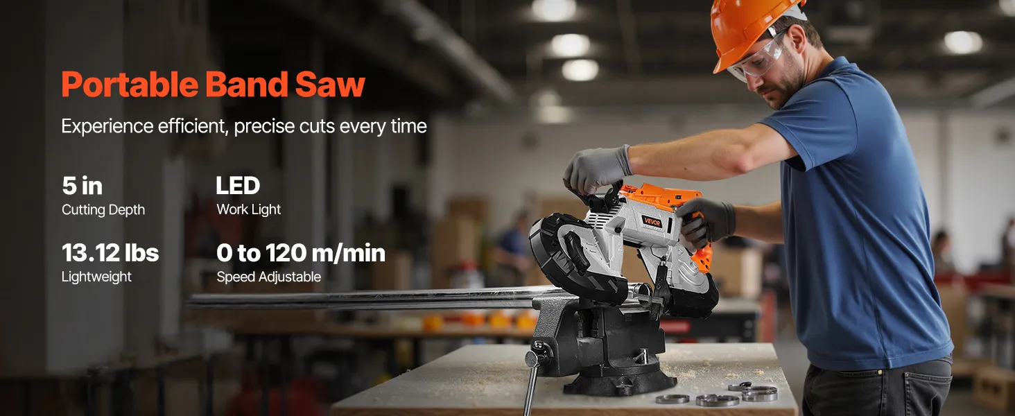 Sierra de cinta portátil de 5 pulgadas de corte profundo, diseño inalámbrico