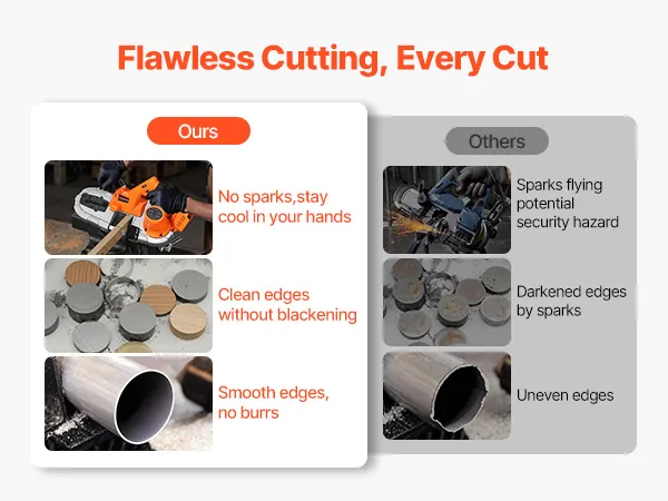 Sin asperezas ni rebabas: Impulsada por un robusto motor sin escobillas, esta sierra de cinta ofrece cortes rápidos y suaves con facilidad. El corte impecable mejora la seguridad, mientras que el acabado limpio y sin rebabas le ayuda a realizar cortes de precisión con eficiencia