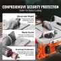 Su seguridad es lo primero: La seguridad es siempre nuestra máxima prioridad. Esta sierra de mesa está diseñada con un escudo de seguridad para evitar que el aserrín permanezca en el aire. Un protector de hoja también evita que la hoja salte después de romperse. Si la máquina se sobrecalienta, el cable de cobre inicia automáticamente la protección contra sobrecarga para evitar que la máquina se dañe. Con mecanismos de seguridad como este implementado, ¡no se puede equivocar!