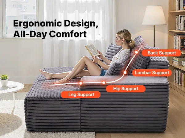 Comodidad ergonómica: Esta chaise longue extragrande cuenta con un diseño ergonómico con espuma de alta densidad y muelles ensacados. Suave pero con buen soporte, se adapta al cuerpo para una comodidad duradera sin hundirse. Una tumbona duradera para la relajación diaria