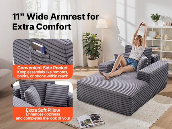 Esta chaise longue presenta un diseño ergonómico y acolchado de alta densidad para una comodidad y un soporte duraderos. Su diseño moderno y elegante la hace ideal para leer, echar una siesta o relajarse en dormitorios, salas de estar o espacios de trabajo.