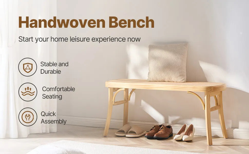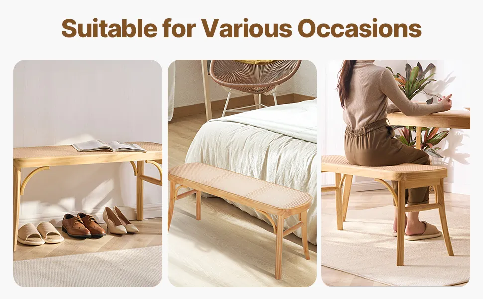 Ideal para diversas ocasiones: Este banco de mimbre es hermoso en dormitorios, entradas o comedores. Úselo como una estación para cambiarse los zapatos para los invitados, un asiento cómodo al pie de su cama o un banco de comedor para reuniones familiares. Es el complemento divertido y funcional que su hogar ha estado esperando