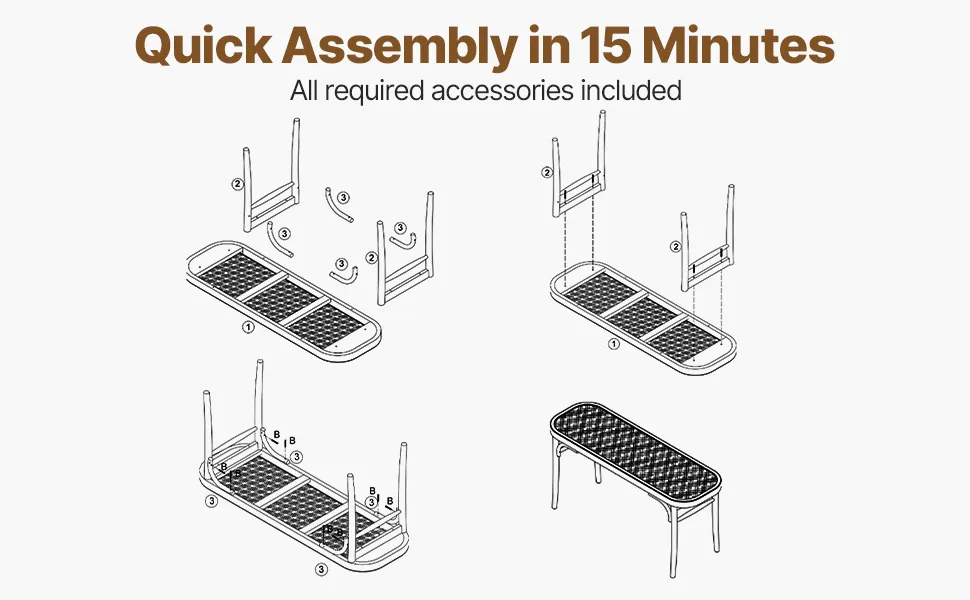 Este banco de madera viene con todas las piezas necesarias e instrucciones claras, lo que le permitirá montarlo rápidamente en unos 15 minutos.