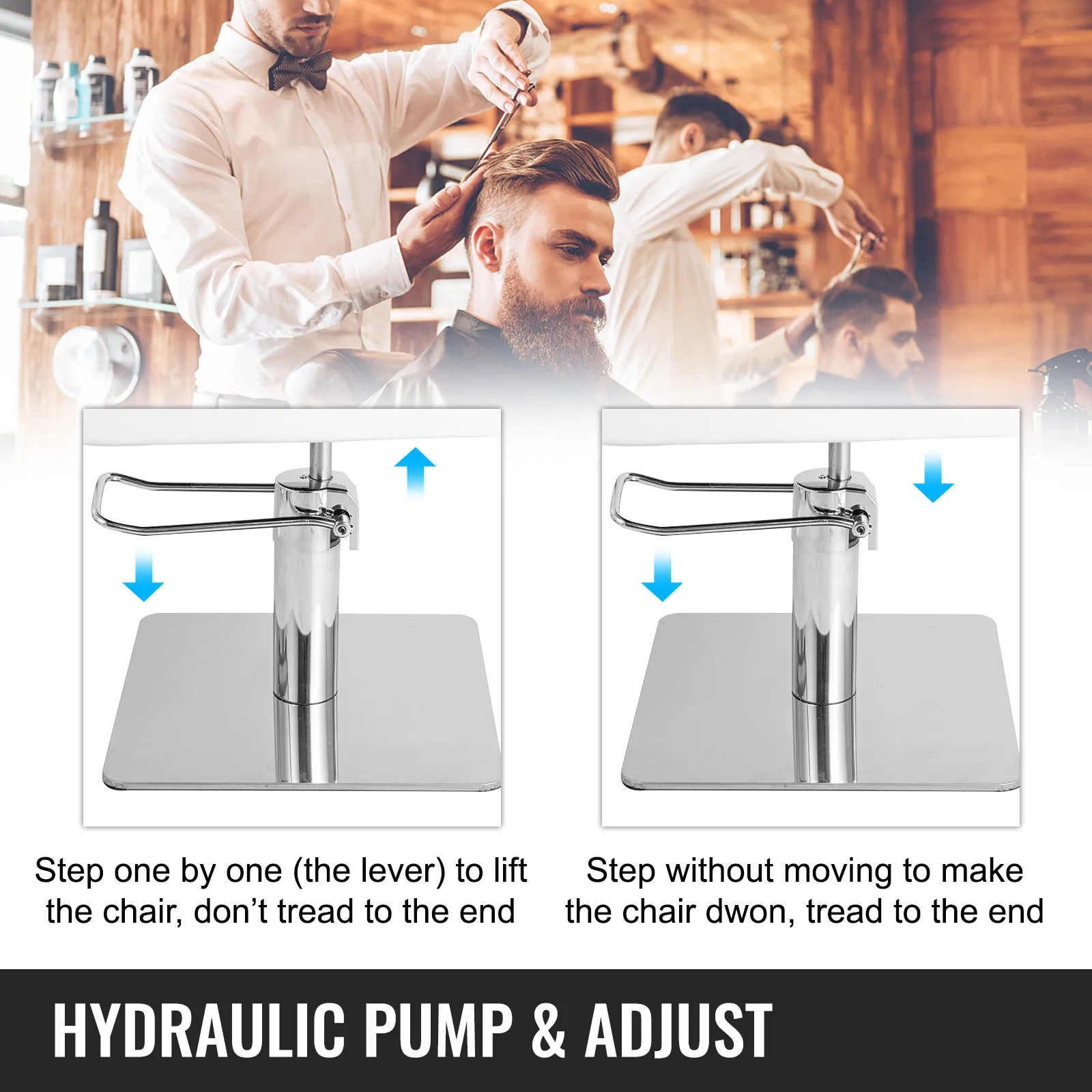 Como producto de alta calidad para un uso más prolongado, adoptamos una bomba hidráulica segura para levantar o bajar el asiento de la silla. Simplemente pisé para controlar el ajuste de altura de la silla.