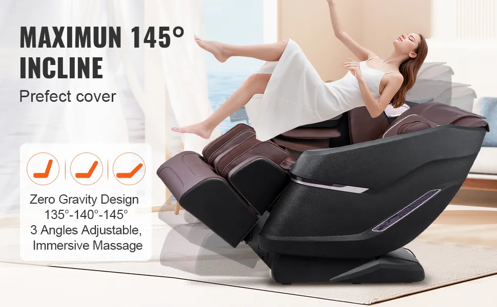 Diseño de gravedad cero: el sillón de masaje de gravedad cero de 3 niveles permite que su cuerpo flote y se relaje. Cuando las rodillas están elevadas por encima del pecho, puede aliviar la presión de la columna y la tensión cardíaca, mejorar la circulación sanguínea y brindar la máxima comodidad