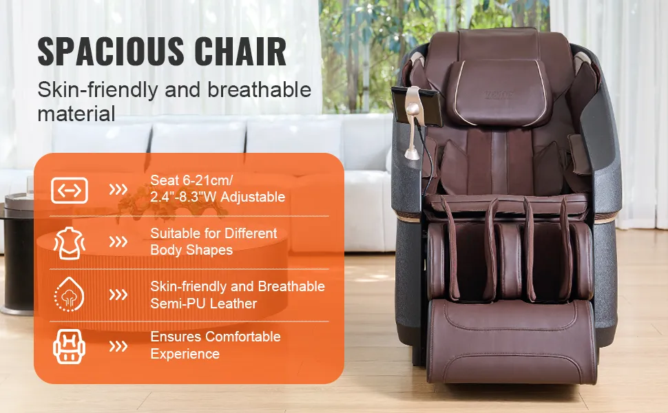 El ancho del sillón de masaje de cuerpo completo se puede ajustar en tres niveles, ofreciendo una experiencia suave y cómoda.