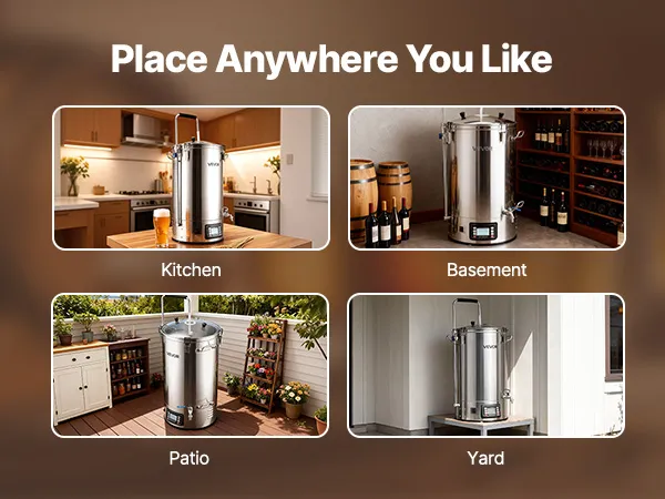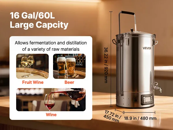 Diseño fácil de usar: Esta olla para cerveza no requiere preparación adicional; solo agrega los ingredientes y elabora cerveza de alta calidad en casa. Su doble aislamiento garantiza un funcionamiento seguro. Con modos manual y automático, tanto principiantes como profesionales pueden elaborar cerveza fácilmente en la cocina, el garaje o el patio