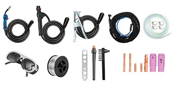 El versátil soldador combinado profesional 3 en 1 MIG/TIG/MMA es capaz de soldar aleaciones, acero dulce, acero soldado, acero inoxidable, cobre y hierro fundido. Trabaja bien con la función MIG/TIG/MMA y puede soldar perfectamente acero y acero inoxidable.