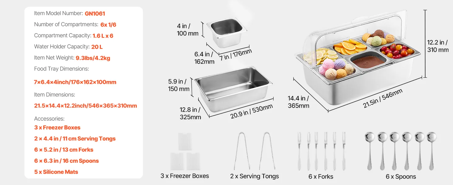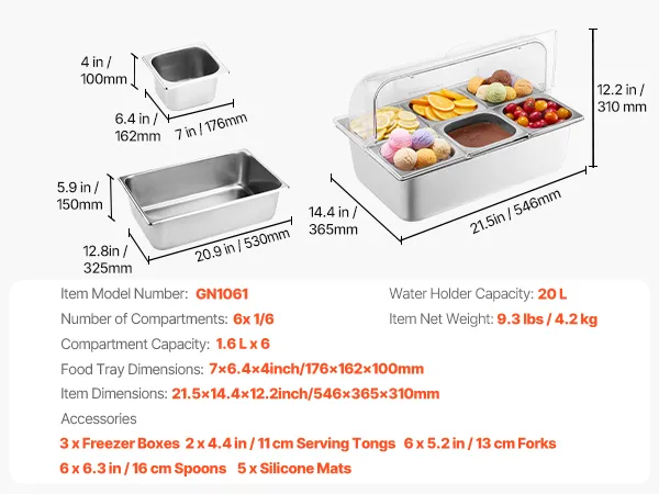 Juego elegante y práctico: Nuestro expositor dispensador de condimentos para bufé incluye 3 recipientes para congelador, 2 pinzas de acero inoxidable, 6 tenedores de fruta de acero inoxidable 304, 6 cucharas de acero inoxidable 304 y 5 tapetes de silicona. Ofrece practicidad y elegancia, lo que hace que las experiencias gastronómicas sean más cómodas y elegantes