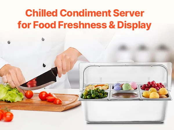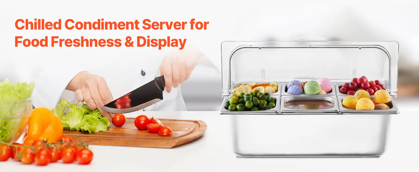 Adecuado para diversos entornos, incluidas cocinas, restaurantes, hoteles y buffets, nuestro servidor de buffet de comida fría contiene de manera eficiente diferentes alimentos y condimentos mientras agrega un toque de elegancia a su espacio.