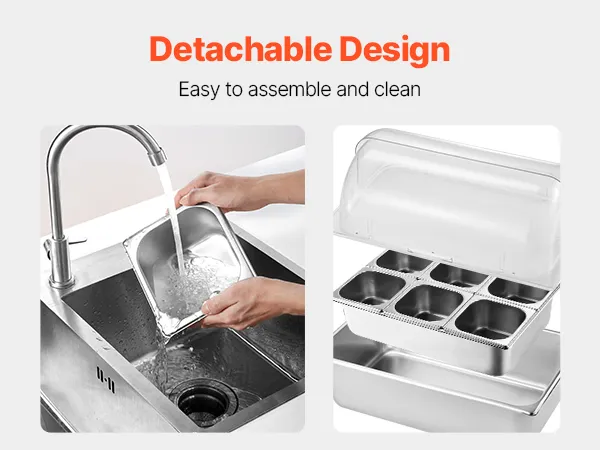 Con un diseño desmontable, nuestro expositor dispensador de condimentos para bufé facilita el montaje y la limpieza, lo que mejora la comodidad diaria. Desmonta fácilmente cada pieza para una limpieza profunda, lo que garantiza que cada rincón se mantenga higiénico.