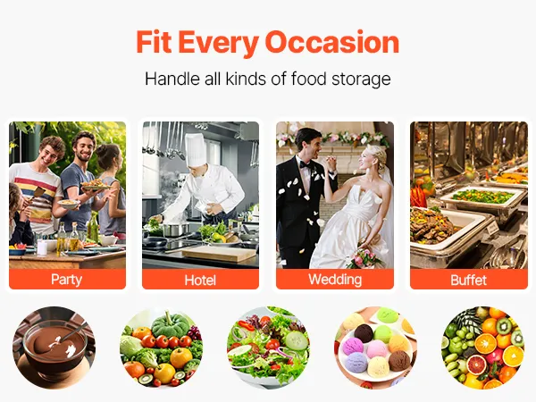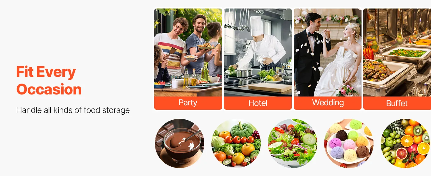 Amplia gama de usos: Ideal para cualquier entorno, ya sea interior o exterior. Nuestro servidor de bufé de comida fría es adecuado para comidas familiares, fiestas, picnics, barbacoas y campamentos, y proporciona una conservación superior de los alimentos y una hermosa presentación