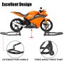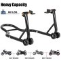 【USO VERSÁTIL】- El elevador de motocicletas es conveniente para que los usuarios limpien y mantengan la motocicleta. Dado que soporta la motocicleta verticalmente debajo de la suspensión, juega un papel único en el desmontaje e instalación de las ruedas de la motocicleta, lo que hace que su proceso de mantenimiento sea fácil y agradable.
