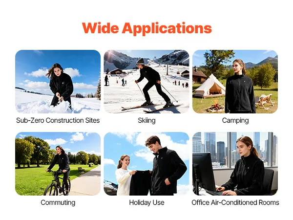 Ideal para cualquier ocasión: La chaqueta polar calefactable está diseñada para trabajar al aire libre en condiciones de frío, practicar deportes, acampar, ir en bicicleta al trabajo, usarla en vacaciones y en habitaciones con aire acondicionado. Su rendimiento fiable le proporciona calor continuo y estable en cualquier momento y lugar