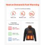 VEVOR Chaqueta Polar Calefactable para Mujer, con Batería Externa Recargable de 7,4 V y 16 000 mAh, 6 Zonas de Calentamiento, 3 Niveles de Temperatura, 3 h/6 h/10 h de Calor, Color Negro, Talla XL