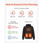 VEVOR Sudadera con Capucha Calefactable Unisex, con Cremallera Completa y Batería 7,4 V 16 000 mAh, 5 Zonas de Calefacción, 3 Niveles Temperatura, para Acampadas en Invierno, Negro, Talla XXL