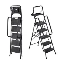 VEVOR 5 Step Ladder, Folding Step Stool with Wide Anti-Slip Pedal, Tool Tray, Dual Side Handrails, 272 kg Capacity Portable Steel Ladder, Multi-Use for Kitchen, Home, Household and Office, Black