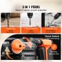 Elija entre 3 funciones: Se pueden cambiar fácilmente 3 modos de función: solo taladro (adecuado para madera y acero), solo martillo (ideal para hormigón y ladrillo) y función de taladro percutor (adecuado para trabajos pesados). El taladro percutor inalámbrico tiene botones de doble interruptor para cambiar las funciones, lo que le permite durar más que un solo botón de interruptor. ¡Golpea el suelo y supera cualquier desafío con facilidad!