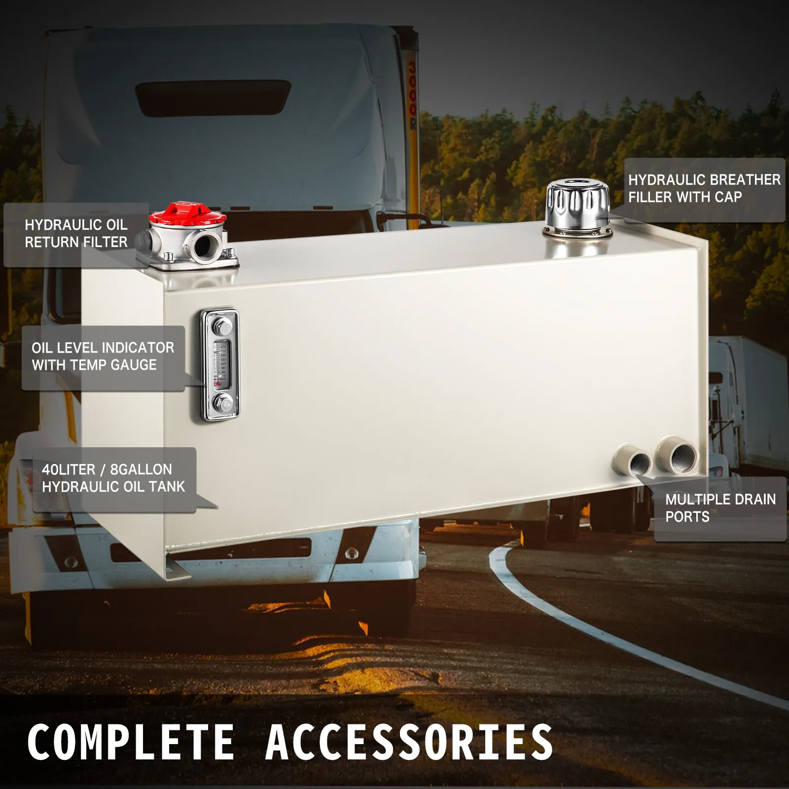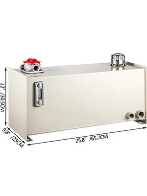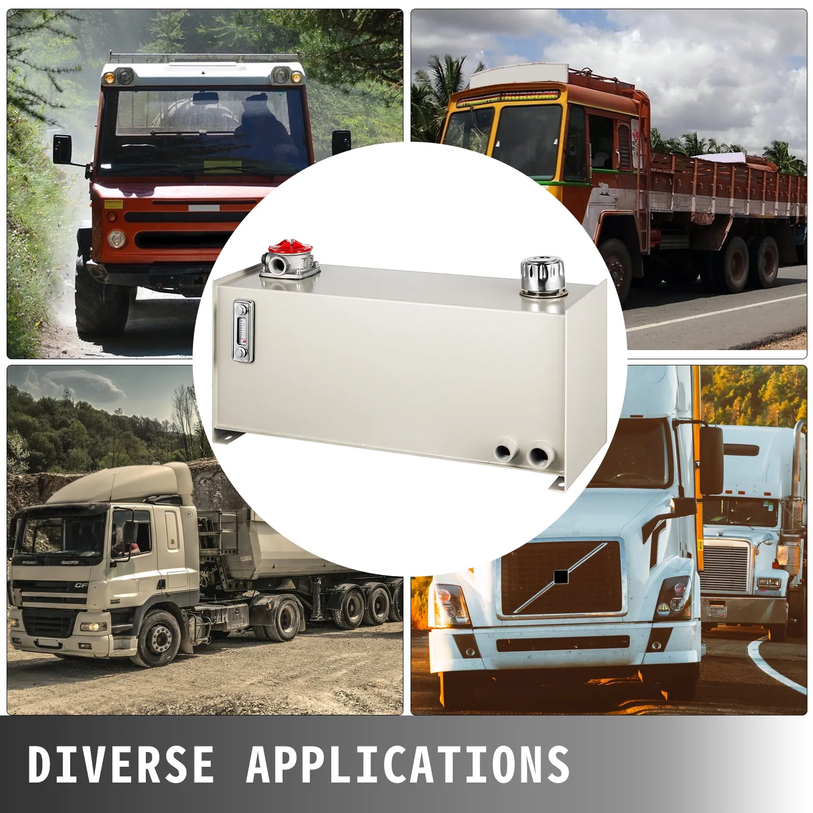 El tamaño del tanque hidráulico es 66, 5 x 25 x 28 cm (L / a / A), que contiene eficientemente abundante aceite 40 L / 8 Gal para tus vehículos mecánicos grandes que consumen petróleo.