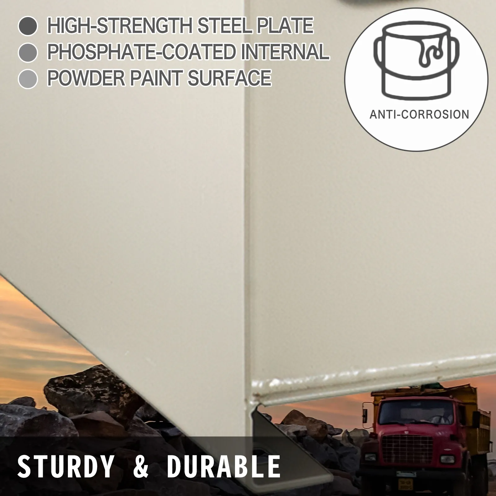 El tanque de combustible auxiliar está hecho de placas de acero laminado en frío de alta resistencia, con revestimiento interno de fosfato y una superficie de pintura en polvo. Es fuerte, duradero y está bien construido.