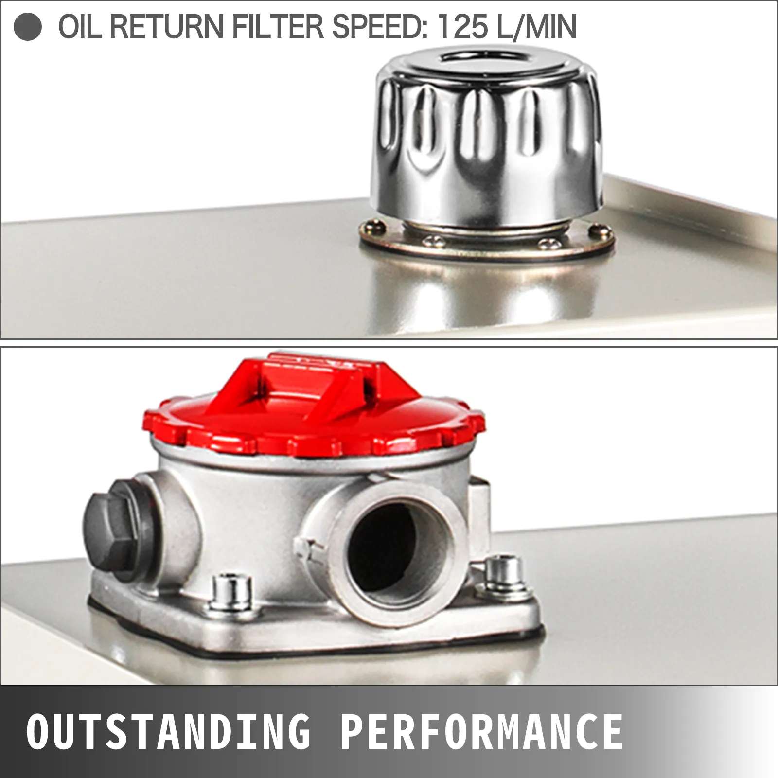 El tanque de aceite hidráulico tiene un filtro de retorno de aceite con una velocidad de suministro de aceite de alta eficiencia de 125 L / min. Un respiradero de llenado con tapa de tanque está bien protegido su rendimiento y asegura que no haya fugas ni derrames de aceite.