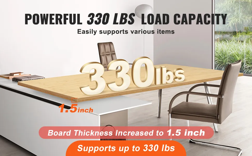 El tablero de bambú de VEVOR está hecho de bambú de alta calidad, lo que lo hace fuerte y duradero. También es muy resistente y duradero. El tablero de la mesa es conocido por su impresionante dureza y densidad, lo que significa que puede soportar cargas pesadas sin abollarse. Esta sólida pieza de bambú garantiza la longevidad incluso en los entornos más exigentes. Con una capacidad de carga de 330 libras, es perfecto para usar para muchos propósitos, desde banco de trabajo hasta encimeras de cocina. Debido a su robustez, el diseño de la mesa la convierte en una opción confiable tanto para el hogar como para la oficina.