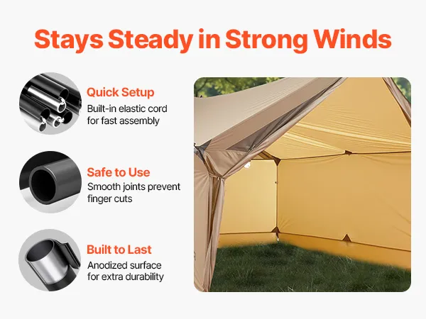 Recubrimiento impermeable mejorado: Fabricado con materiales impermeables de alta calidad para mantener la carpa para acampar seca y confiable en climas cambiantes