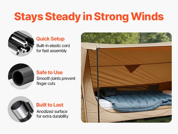 Experimente la tienda de campaña con postes, diseñada para campistas que priorizan la seguridad y la comodidad. Los postes de soporte reforzados ofrecen una gran resistencia al viento, lo que la hace confiable en condiciones climáticas adversas.