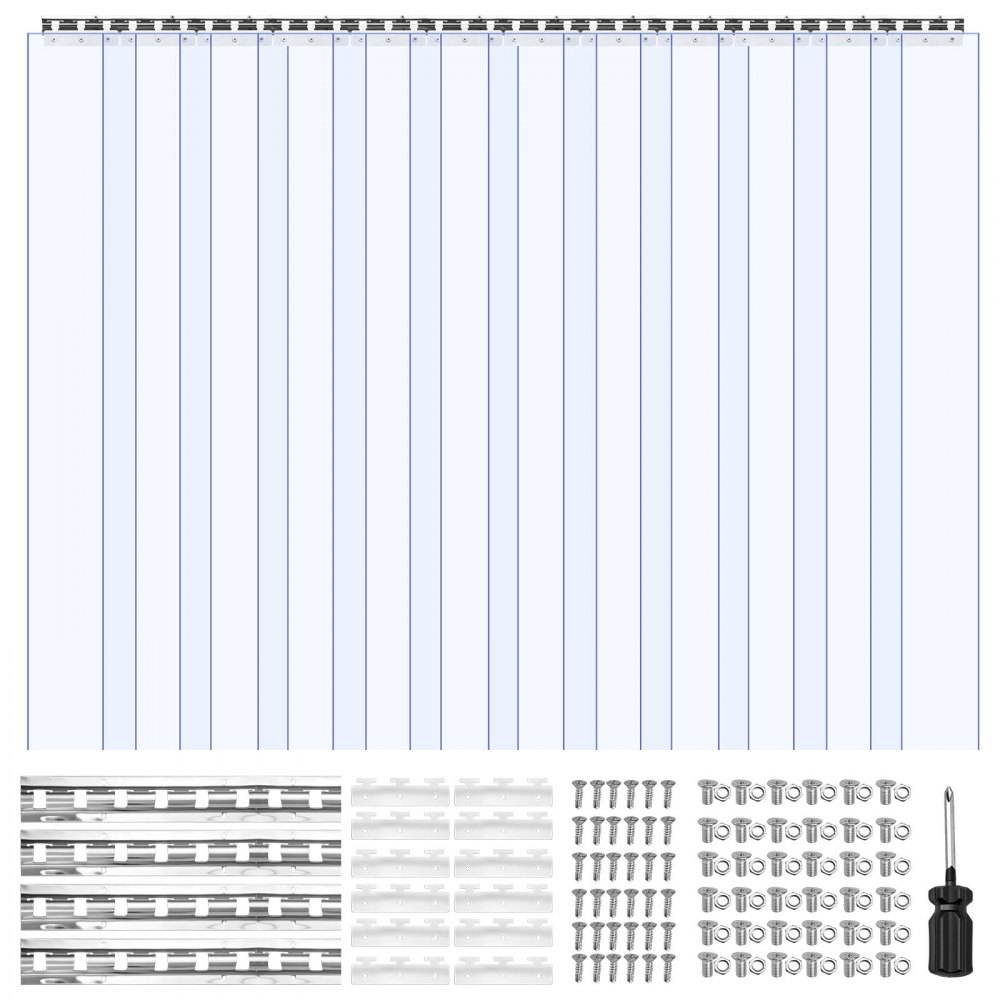VEVOR Cortina de Tiras 183 x 213,4 cm Cortina de Puerta de PVC Transparente 12 Tiras de Plástico Espesor de 2 mm para Puerta de Cámara Frigorífica, Almacén, Refrigerador de Supermercado, Garajes