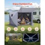 360° Ventilation: Mesh sidewalls and roof allow airflow while keeping critters out. Two roll-up wind panels with ventilation windows maintain air circulation even when fully closed. The canopy shelter tent provides a comfortable for adults