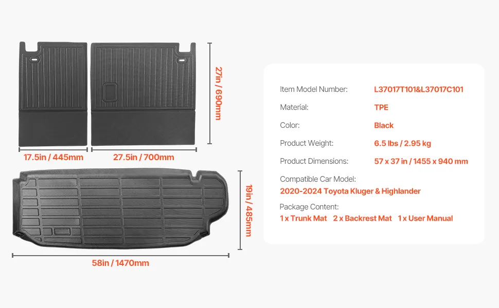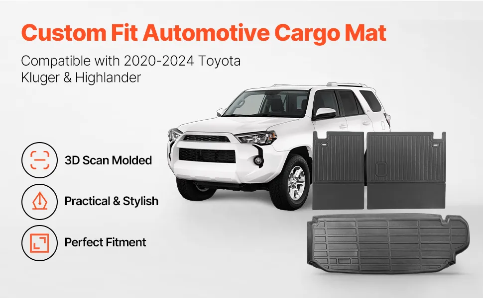 Ajuste personalizado: Compatible con los modelos Toyota Kluger y Highlander 2020-2024, este juego de tapetes para el área de carga y el respaldo utiliza tecnología 3D avanzada para capturar con precisión los datos del vehículo, lo que garantiza un ajuste perfecto. El juego de tapetes para el área de carga no solo le agrega un toque de estilo a su automóvil, sino que también realza el atractivo general de su interior