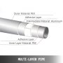 La capa interna y externa es higiénica y resistente. La capa intermedia de aluminio aumenta la flexibilidad de la tubería.