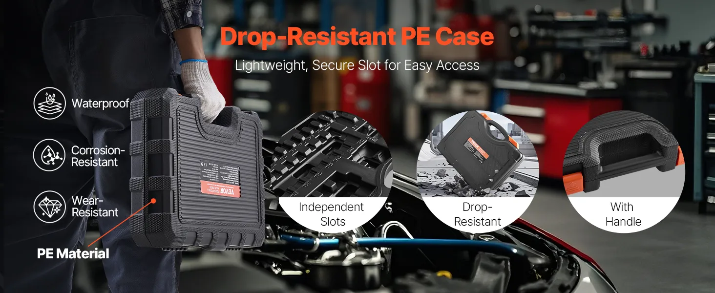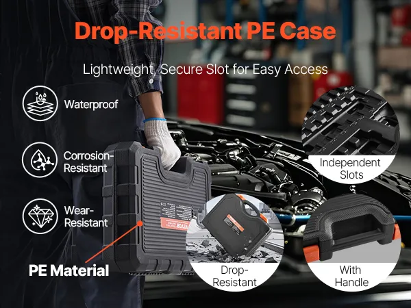 No se preocupe más por caídas accidentales o herramientas dispersas. El resistente estuche de almacenamiento de polietileno cuenta con ranuras seguras para cada dado, manteniéndolos firmemente en su lugar para evitar pérdidas o daños.
