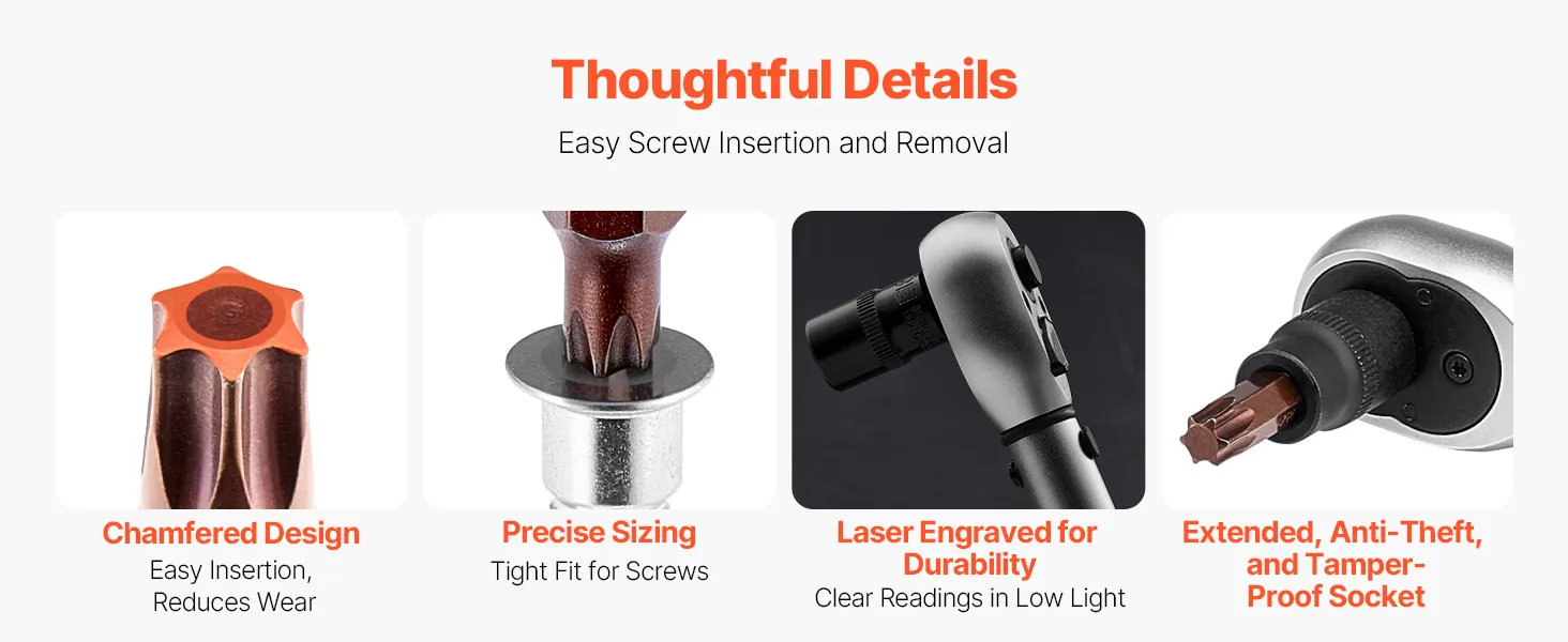 Fácil inserción: El juego de puntas Torx presenta un diseño de borde biselado con puntos de contacto triangulares redondeados para expandir el área de contacto, lo que garantiza una inserción suave y minimiza el desgaste del sujetador. Las dimensiones de ajuste de precisión permiten una alineación fácil y un enroscado seguro, lo que hace que la inserción o extracción de tornillos sea sencilla