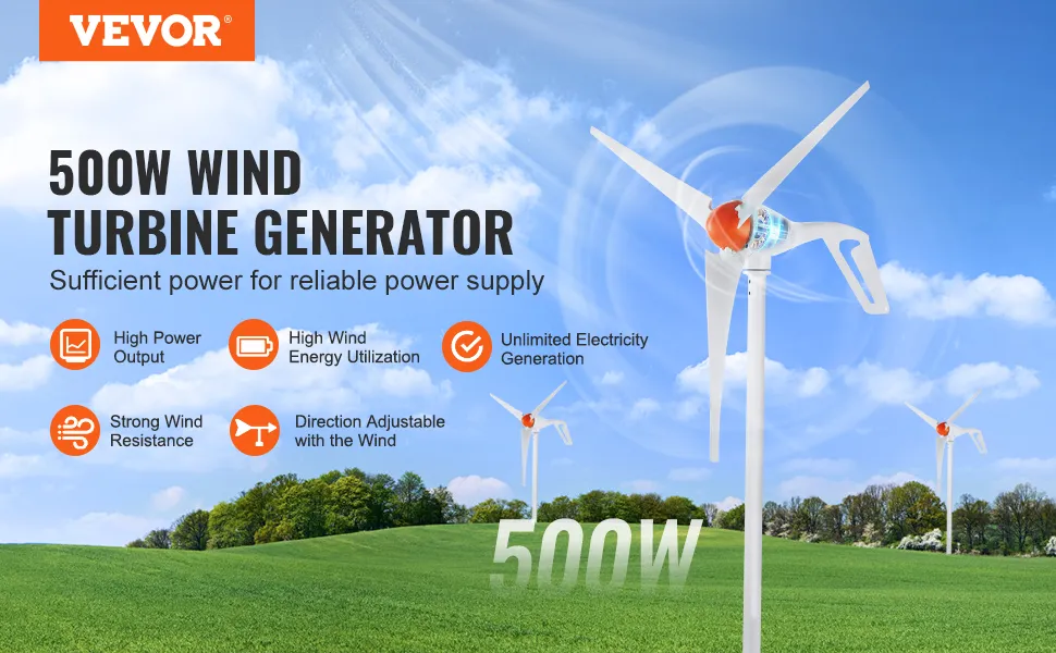 El generador de turbina eólica VEVOR 500W es fácil de instalar. El kit incluye todos los componentes necesarios, como el anemómetro y el controlador MPPT, lo que facilita su instalación para diversos usos. El proceso de instalación es sencillo, por lo que está disponible para muchas aplicaciones diferentes. Además, el generador requiere un mantenimiento mínimo. Por lo tanto, no requiere mucho tiempo ni esfuerzo a largo plazo. Las comprobaciones periódicas garantizan el funcionamiento sin problemas del sistema. Su fácil instalación y su bajo mantenimiento lo convierten en una opción racional para la mayoría de las personas. Es una forma sencilla de generar energía limpia. Esta característica es especialmente útil para quienes son nuevos en los sistemas de energía eólica.