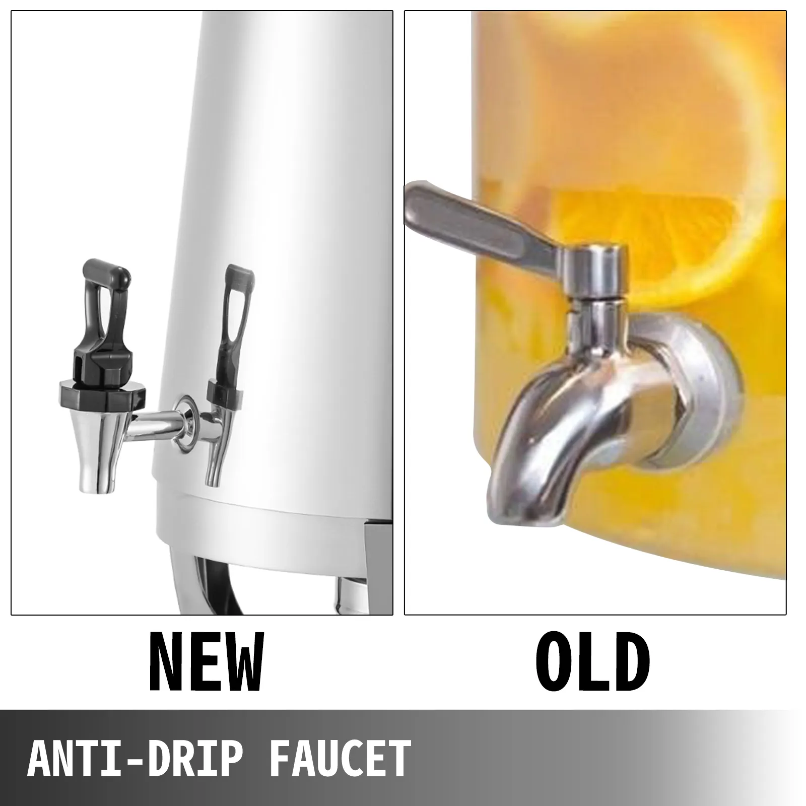 Este dispensador de bebidas para fiestas está diseñado para contener tanto bebidas calientes como frías, incluyendo café fresco, té, chocolate caliente, limonada, zumo de naranja, etc.