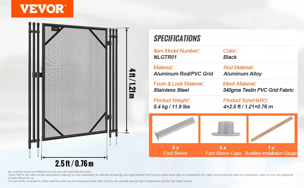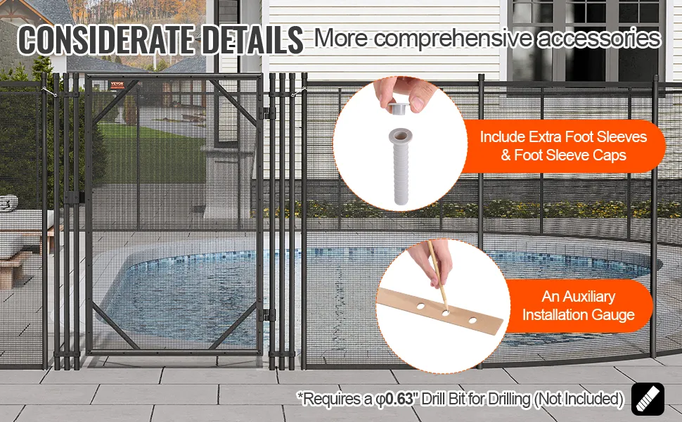 El paquete incluye una funda para pie adicional y una tapa con cada enrejado de cerca de piscina, así como una plantilla de perforación de instalación auxiliar, instalación precisa y conveniente.