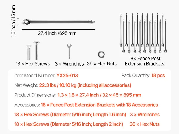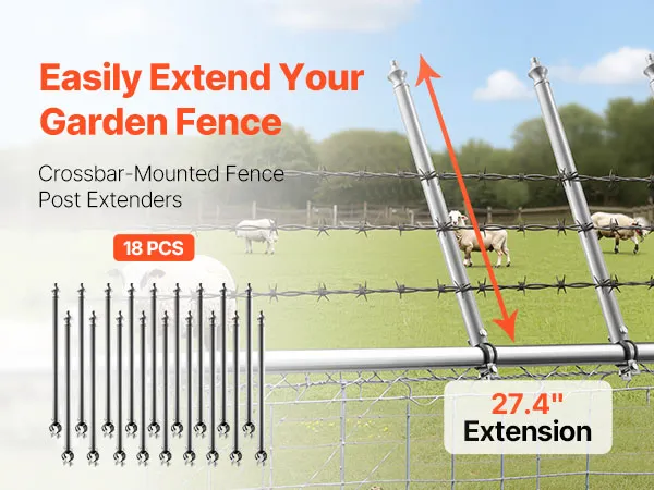 Extensión de cerca de 69,5 cm: La extensión de cerca de malla metálica incluye 18 extensores para postes que elevan la cerca 69,5 cm verticalmente. El extensor para la parte superior de la cerca es ideal para aumentar la seguridad y la privacidad en patios, granjas y jardines. Ayuda a evitar que las mascotas salten o escapen en diversos espacios exteriores