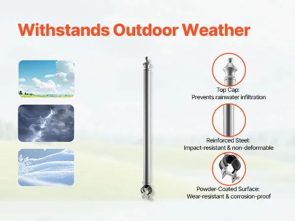 Resistente y resistente a la intemperie: Hecho de acero engrosado con un recubrimiento en polvo resistente a la oxidación, el brazo extensible de cerca galvanizado está diseñado para soportar impactos y elementos exteriores, lo que garantiza una durabilidad duradera en todas las estaciones