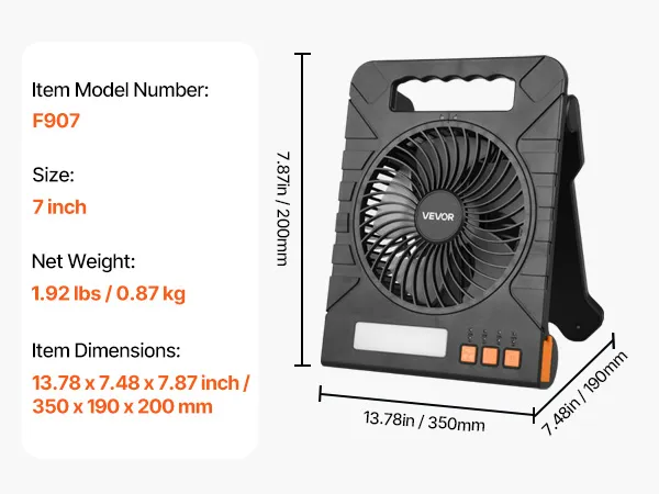 Linterna portátil: Con un alcance de 9,7 metros, esta linterna ilumina tus actividades al aire libre, ya sea acampar, pescar o asar. Su diseño portátil la hace fácil de transportar, proporcionando luz siempre que la necesites. Este ventilador solar portátil es esencial para tus aventuras al aire libre