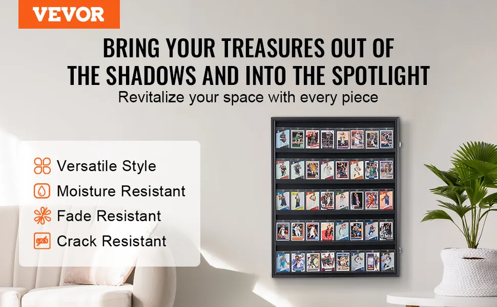 La vitrina para tarjetas deportivas VEVOR cuenta con protección UV de primera calidad, que protege sus tarjetas contra los dañinos rayos ultravioleta. El vidrio de PC Clearview mantiene sus tarjetas en perfectas condiciones para una conservación a largo plazo. La protección UV es de hasta el 98%, lo que garantiza una decoloración mínima. Es ideal para exhibir valiosas tarjetas deportivas. El vidrio de PC Clearview garantiza que sus gráficos siempre sean visibles. Puede disfrutar de su colección sin preocuparse por los daños del sol. Eso lo convierte en una opción ideal para coleccionistas. Nuestra defensa UV agrega una capa de seguridad a sus colecciones. Una vista clara del vidrio de PC mejora el atractivo visual de su colección. Para cualquier coleccionista serio, esta característica es esencial.