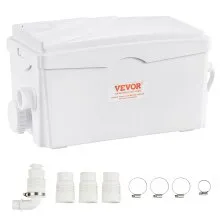 VEVOR 1200 W Bomba Trituradora para Inodoro con 4 Entradas de Agua, Caudal de 48 GPM, Altura de 10 m, Máquina de Descarga Ascendente para Eliminación de Aguas Residuales para Inodoro, Lavabo y Bañera