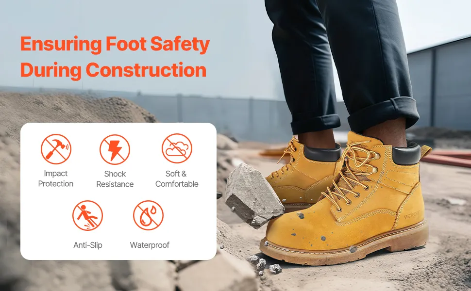Transpirables y ligeras: Estas botas cuentan con cuero impermeable para evitar la sequedad, mientras que las plantillas transpirables evitan el sudor de los pies. La suela de goma suave mejora la comodidad, lo que las hace ideales para los trabajadores que necesitan estar de pie o caminar durante períodos prolongados en las obras de construcción