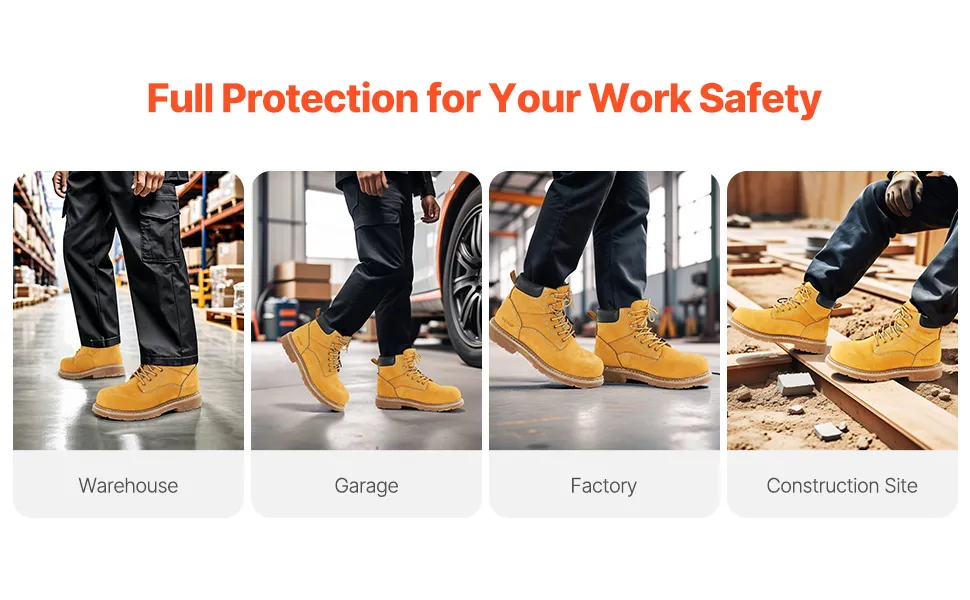 Use nuestras botas con punta de acero con confianza en almacenes, garajes, fábricas o sitios de construcción. Con múltiples características de protección, sus pies estarán protegidos en todo momento.