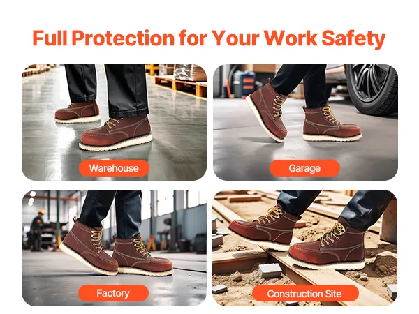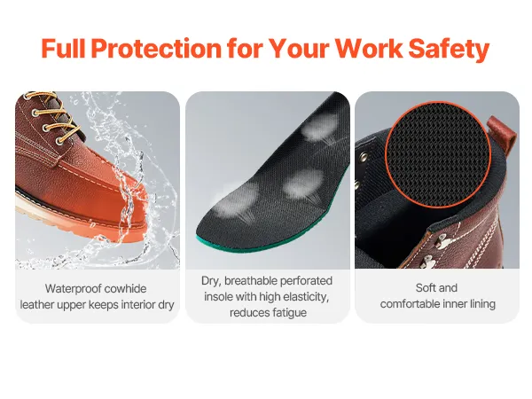 Breathable and lightweight: These boots are made of waterproof leather to keep your feet dry, while the breathable insoles prevent perspiration. The soft rubber sole enhances comfort, making them ideal for workers who have to stand or walk for extended periods on construction sites.